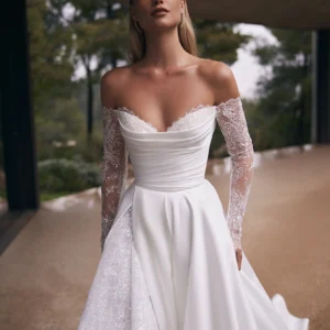 Vi har gjort os ekstra umage med at udvælge smukke og stilfulde bryllupskjoler i København. For så har du god mulighed for at vælge mellem designs og modeller, som kan være med til at fuldende din dag. Hvad end du er til brudekjoler med volumen, fine små perledetaljer, V-udskæring på ryggen, en blonderyg eller langærmet, så er chancerne store for, at du finder det her.